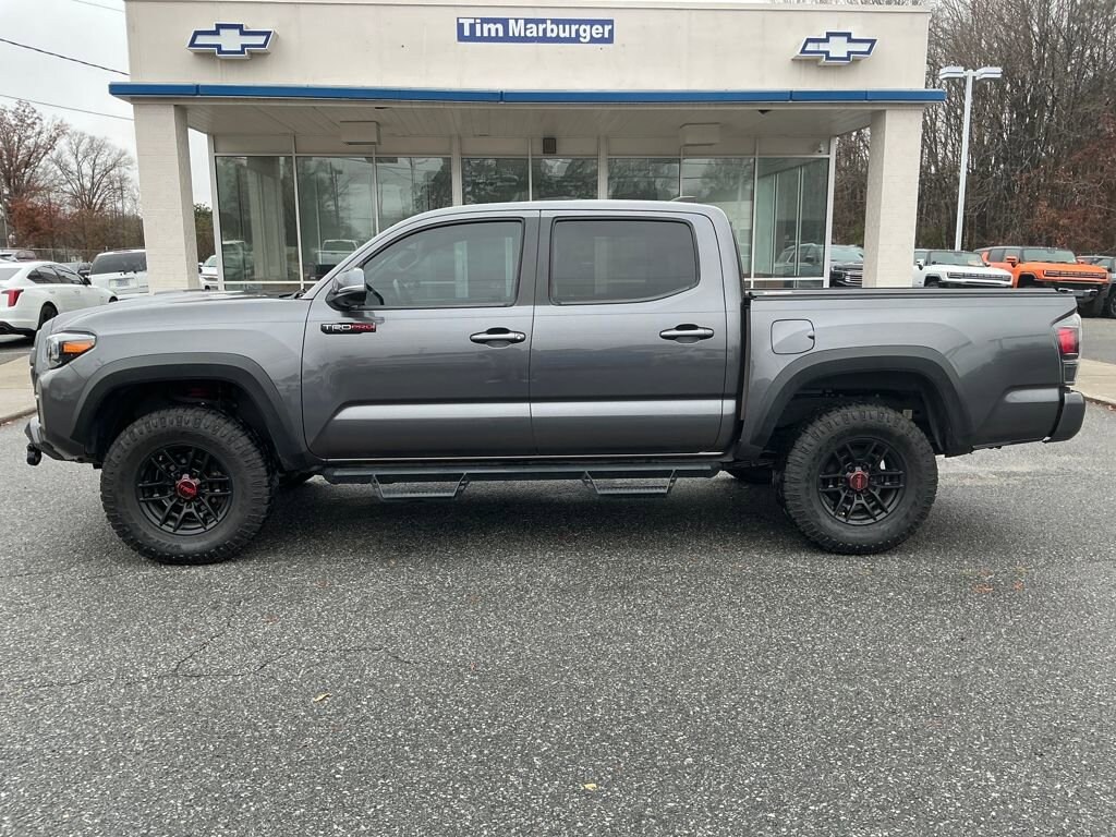 2021 Toyota Tacoma TRD Pro 4WD | 3.5L V6 | The Ultimate Off-Road Mid-Size TruckWorking with us is easy!If you're searching for a rugged, reliable, and highly capable off-road truck with legendary resale value, this 2021 Toyota Tacoma TRD Pro 4WD is the one everyone is looking for. Powered by Toyotas proven 3.5L V6, equipped with exclusive TRD Pro hardware, and built to conquer trails, mountains, and daily driving with ease, this Tacoma stands out as the top tier of the Tacoma lineup.Designed for adventure seekers and everyday drivers alike, the TRD Pro delivers exceptional performance, advanced safety, and a premium interior making it one of the most desirable mid-size trucks on the market.Unmatched TRD Pro PerformanceBuilt by Toyotas performance division, the TRD Pro comes ready for serious off-road control and durability:3.5L DOHC V6 Engine Produces 278 horsepower and 265 lb-ft of torque.4WDemand Part-Time 4WD System Switches between modes effortlessly for changing terrain.TRD-Tuned FOX Internal Bypass Shocks Designed for high-speed off-road stability and maximum wheel travel.TRD Pro Front & Rear Suspension Enhanced ride comfort and rugged capability.Electronically Controlled Locking Rear Differential Superior traction in heavy off-road conditions.Multi-Terrain Select & Crawl Control Automatically adjusts power and braking to tackle sand, mud, rock, and more.Skid Plates (Front, Transfer Case, and Engine) Protects critical underbody components.Built to go where ordinary trucks cant.TRD Pro Exterior: Aggressive & FunctionalThe TRD Pro is known for its exclusive, rugged styling elements:Heritage TOYOTA Front Grille Iconic bold design.TRD Pro Hood Scoop with GraphicsLED Headlights, Fog Lights & Taillights Crisp illumination in all conditions.TRD Pro 16-Inch Black Alloy Wheels Wrapped in aggressive all-terrain tires.TRD Stainless Steel Exhaust Signature deep tone and performance enhancement.Color-Keyed Overfenders Adds athletic stance and durability.Available TRD Pro Roof Rack (Based on equipment)A truck built to turn heads on-road and dominate off-road.Premium TRD Pro Interior & TechnologyComfort meets capability with thoughtful interior upgrades:Premium Leather-Trimmed Seats with TRD Pro stitchingHeated Front SeatsPower Adjustable Drivers Seat8-Inch Touchscreen with NavigationApple CarPlay, Android Auto & Amazon Alexa CompatibilityJBL Premium Audio System Rich, clear sound for every mileWireless Charging PadSmart Key System with Push-Button StartDual-Zone Automatic Climate ControlA tech-forward, comfortable cabin built for long drives and off-road exploration.Advanced Safety & Driver ConfidenceToyota Safety Sense P (TSS-P) is standard, offering:Pre-Collision System with Pedestrian DetectionDynamic Radar Cruise ControlLane Departure AlertAutomatic High BeamsRear Parking SonarBlind Spot Monitor with Rear Cross-Traffic AlertPeace of mind comes standard.Why Buy This 2021 Tacoma TRD Pro?Highly sought-after TRD Pro modelLegendary Toyota reliability & resale valueOff-road hardware built for real adventureComfortable, high-tech interiorStrong 3.5L V6 performanceA perfect blend of capability, durability, and everyday drivabilityAvailable Now at Tim Marburger ChevroletTake home the mid-size truck everyone wants.Explore more or schedule your test drive today at 360Chevy.com.Don't wait TRD Pro models sell fast. Working with us is easy!